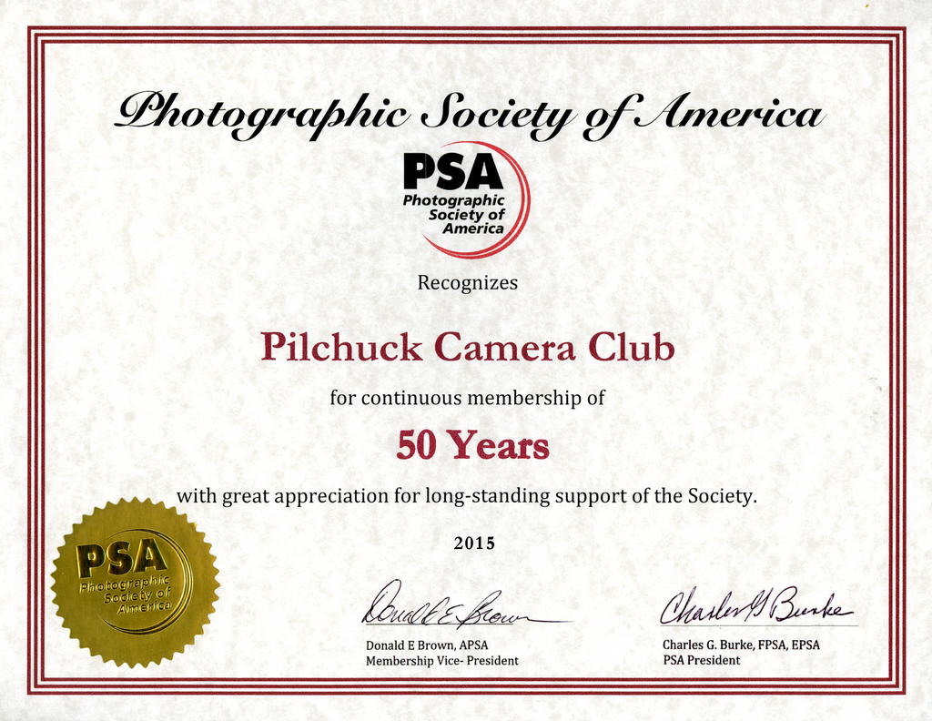 Photographic Society of America Our membership in PSA allows us to participate in the PSA interclub competitions including Creative, Nature, Travel and Interclub Competition. ![]() Pilchuck Camera Club has been a member of PSA since 1965 and celebrated 50 Years of membership in 2015. |