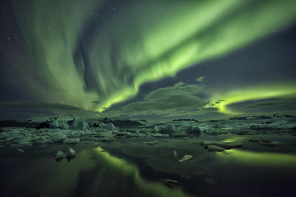 1st - "Glacier Lagoon" by Sharon Ely © "In focus throughout. Rays converge at a power point. Reflection gives angles to image and fills the frame. Very dramatic. Northern lights are clear and add excitement. Balanced composition. Reflection adds completeness." ![]() |