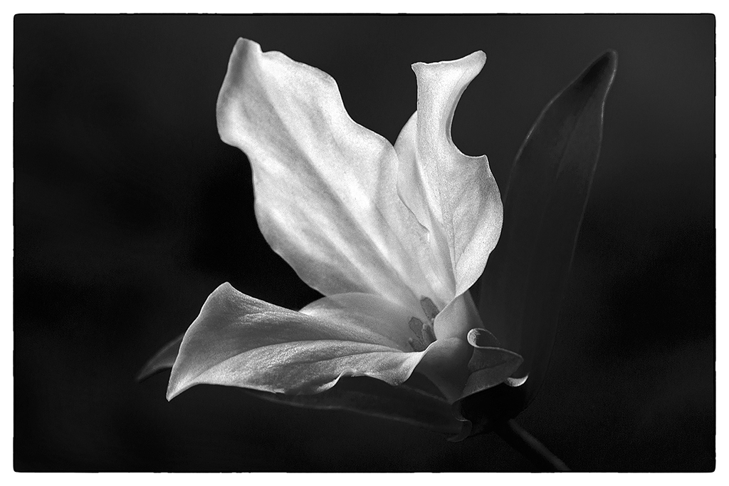 3rd - "Trillium Black & White" by Sharon Ely © "Trillium presented with great lines, leaves to petals. Excellent range of tones, light to dark. Light gray tone in much of white petals, light tones on edges of leaves, defining the flower." ![]() |
