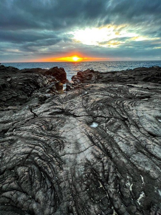 HM - "Kealakekua Lava Flow" by Dell Deierling © "Superb color and comp. Great use of leading lines. Nice patterns, blown highlights. Good leading lines from rocks to sunset."