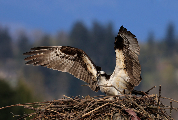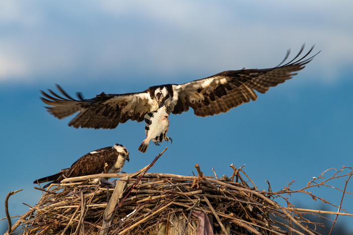 HM - "Female Osprey" by Sherrie Tallman © "Great use of shallow DOF. Pin sharp focus on bird. Interesting pose. lovely action shot- wish the hatchling was more visible. Good focus."